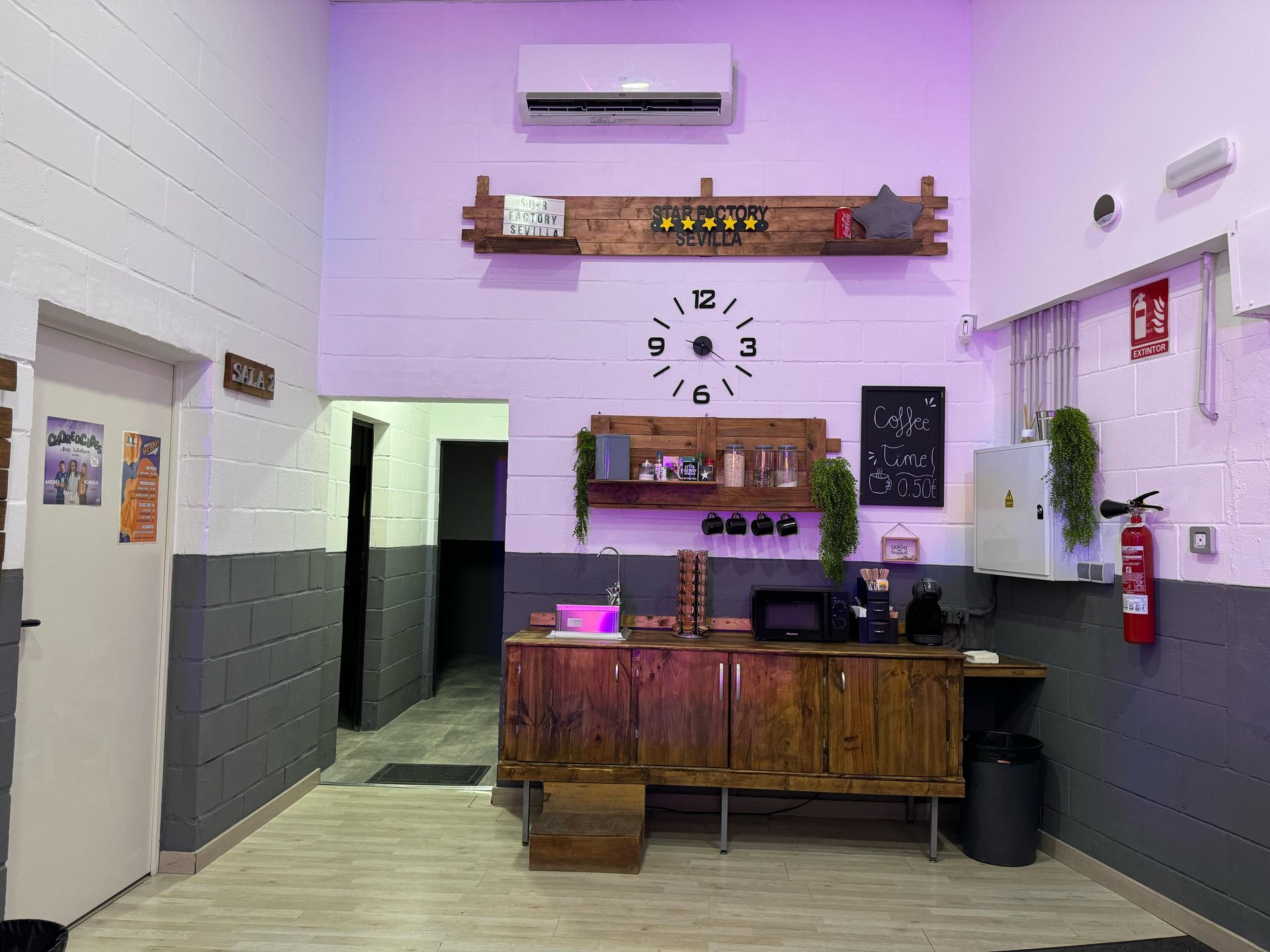 Nuestra recepción de 50 metros, da paso a la zona de información e inscripción, donde estaremos encantados de atenderte y resolver tus dudas. Habilitada con zona de espera y equipada con una pequeña cocina con fuente de agua fría, microondas y zona de cafetería, para que puedas estar como en casa. Desde la recepción podrás acceder a nuestras dos salas de baile y a la zona de vestuarios